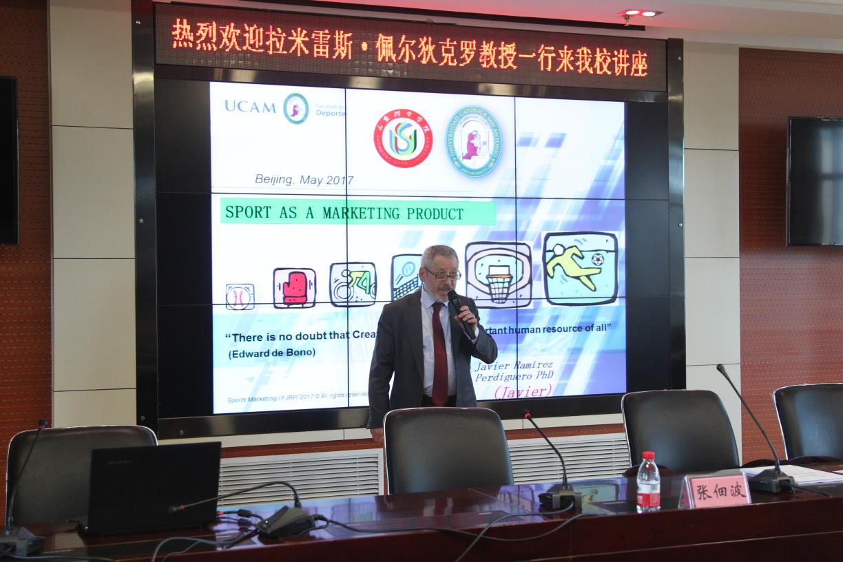下午1点50分,哈维尔教授以“从市场产品的角度认识体育”为题为我校师生做了一场精彩的报告,哈维尔教授从体育功能的重新认识、体育产品的7个核心发现、职业体育市场的发展趋势、体育产品价值的四个支柱、体育营销的现代理念以及欧洲冠军联赛的具体运营等六个方面进行了讲授。哈维尔教授的报告有理论分析,有数据支持,有前景展望,理论性和思想性俱佳,受到师生的热烈欢迎。讲座由机关第二党总支书记、党院办副主任、发展评估与规划处副处长张佃波主持,2016级体育管理专业的师生听取了报告。