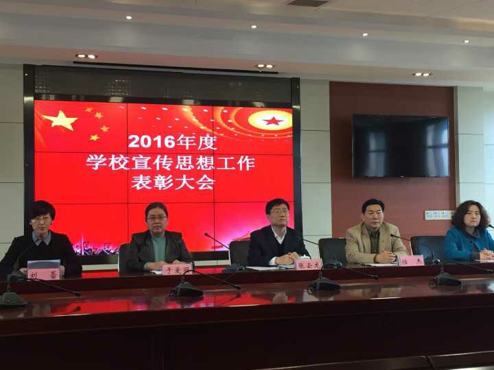 4月7号下午,我校2016年度宣传思想工作表彰大会在我校济南校区办公楼六楼会议室举行。党委副书记、纪委书记张云龙,宣传部、统战部部长任杰,宣传部、统战部副部长于爱丽、钱芳出席会议。会议由校报编辑部主任刘蕾主持。