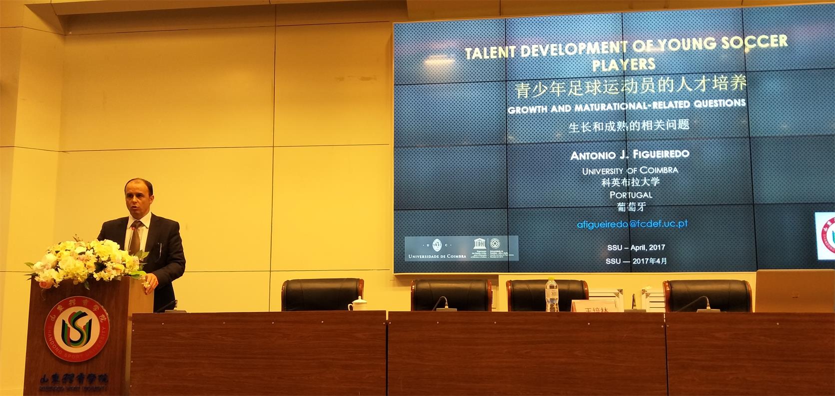 2017年4月9日至16日,应我校体育科学研究院、科研处“国家两院”邀请,葡萄牙科英布拉大学运动科学和体育学院院长、葡萄牙科英布拉青少年足球俱乐部副主席Antonio FIGUEIREDO(安东尼奥·菲格雷多)教授访问我校。到访期间,菲格雷多教授为我校师生开展了为期5天的理论与实践讲学,与我校相关部门就人才团队建设商讨与科英布拉大学的合作事宜,并为我校的科研提升提出宝贵建议。