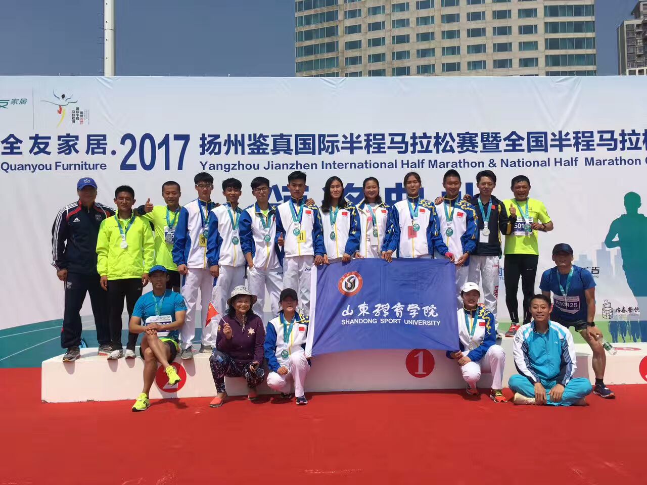 2017中国扬州鉴真国际半程马拉松赛于4月23日8时鸣枪起跑。我校代表队在高校团体组半程马拉松赛项目(21.0975公里)的比赛中努力争先、奋力拼搏,最终取得了全国高校女子团体第一名(包揽国内前三名),男子团体第三名的优异成绩。