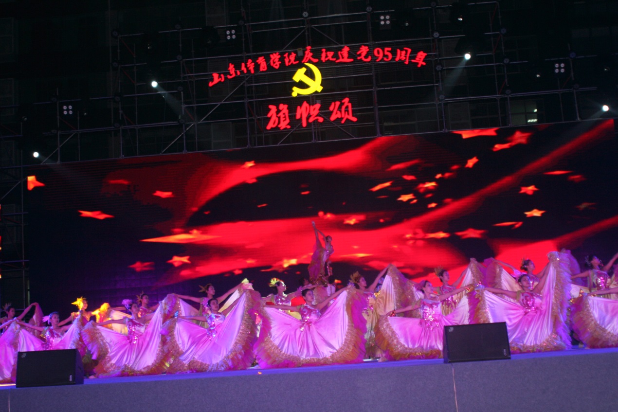 6月30日,山东体育学院庆祝建党95周年大型歌舞晚会《旗帜颂》盛大开演,体育艺术学院师生承担了整场晚会的编导舞美,为大家呈现了一场精彩绝伦的晚会,得到全校师生的肯定和社会的认可。总导演为艺术学院教授阿德华措。