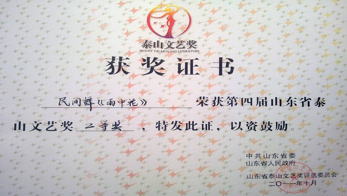 2011年学院编导的《雨中花》获得山东省政府二等奖。