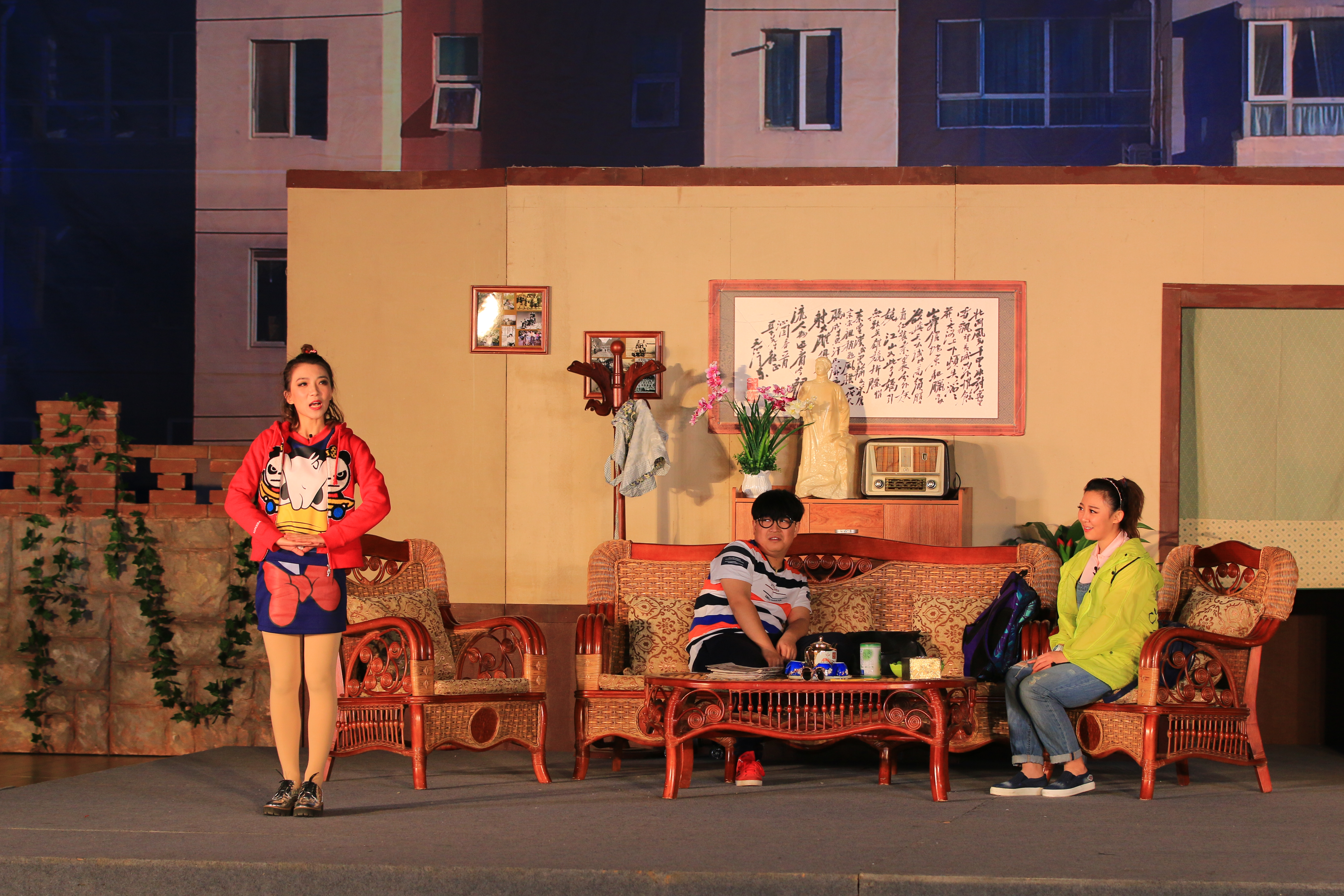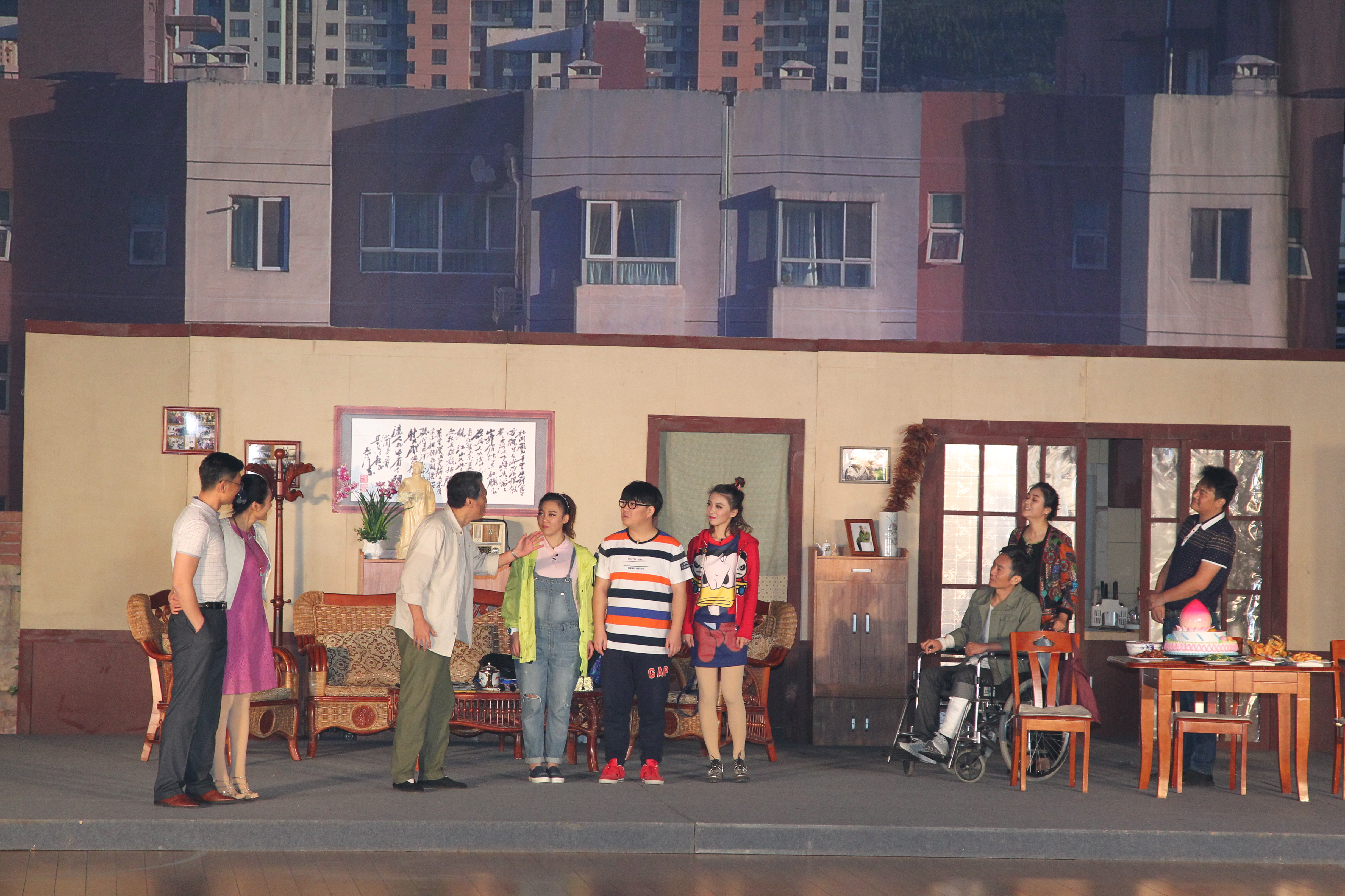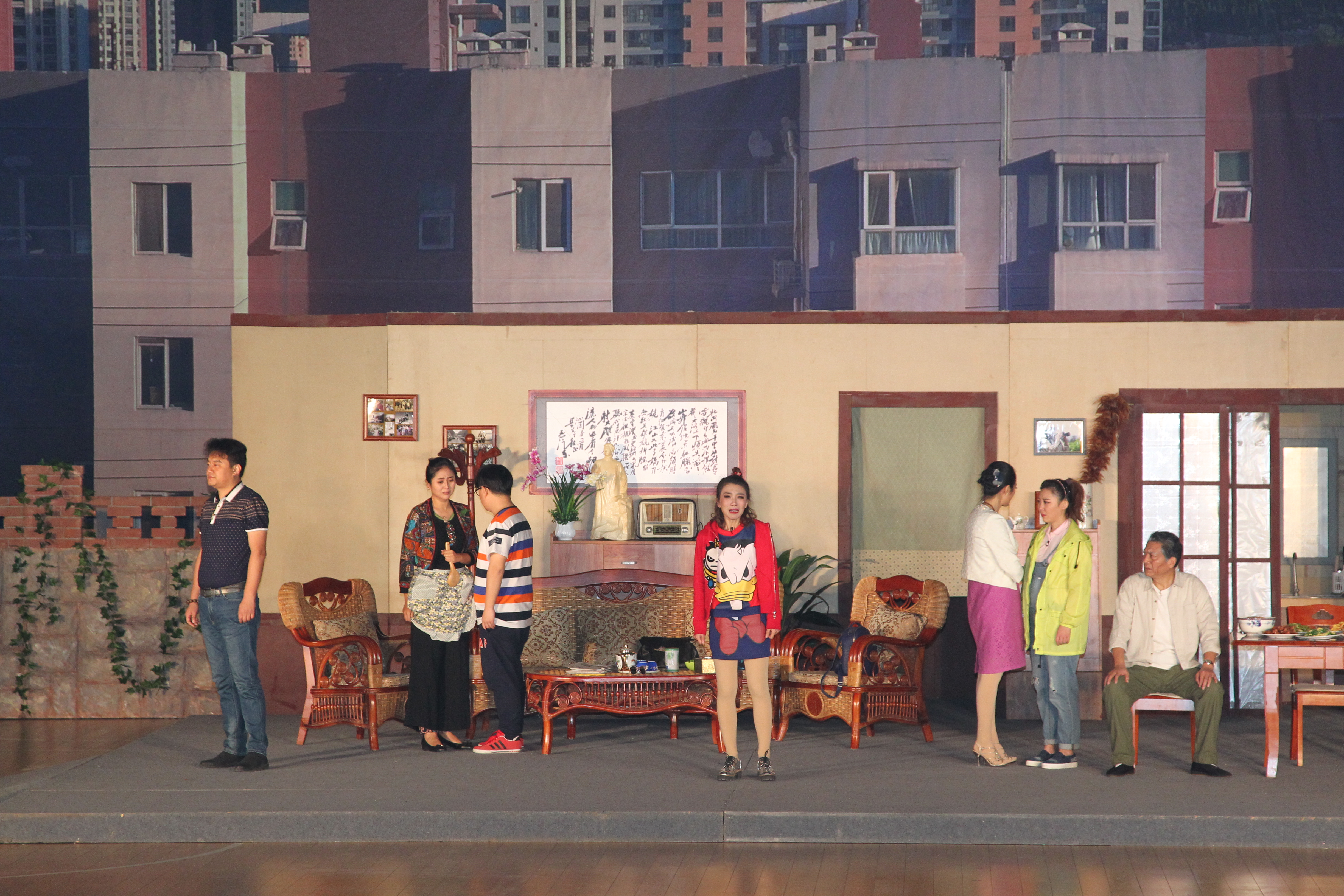 《家事》在我校演出两场,16日继续在篮球馆演出。为了组织好此次演出,我校由宣传部牵头,校办公室、团委、教务处、学生处、后勤处、资产管理处、保卫处和各院校按照任务分工做了精心的安排,保证了演出的顺利进行。