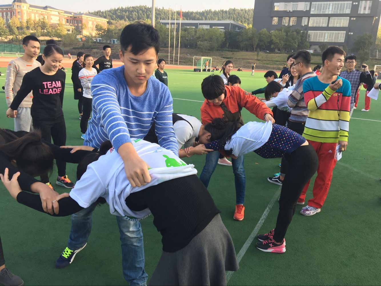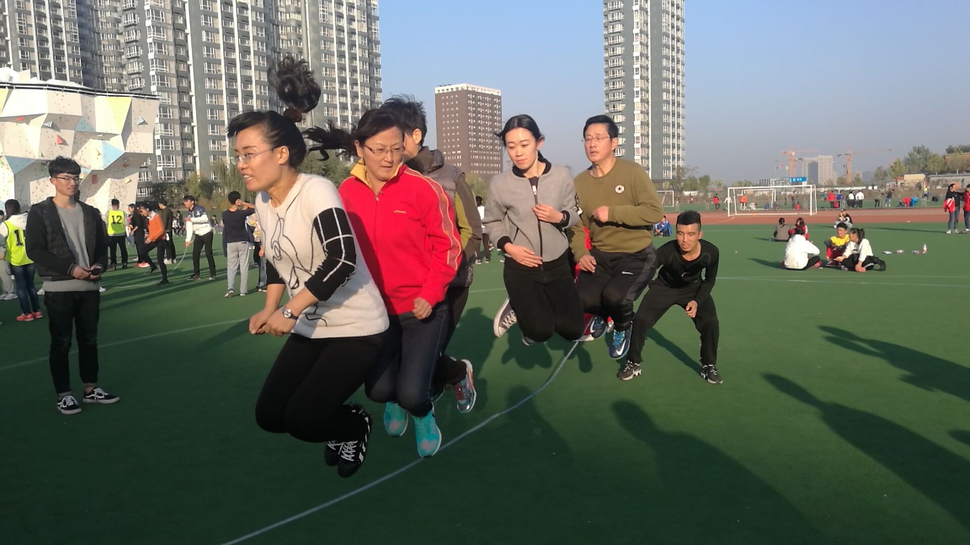 为了组织好这次趣味运动会,运动与健康学院部分师生团结协作,辛勤付出,设计比赛项目,布置比赛场地,积极为老师和同学们服务。在初冬的暖阳里,老师同学们带着似火的热情参加一个又一个活动。无论是男女合作的撕名牌大战、个人比拼的电臀,还是团体大战的跳大绳、师生共乐的旱地龙舟,都展现出青春的活力和张力,团体的力量和默契。操场上盈满了着老师们和同学们的欢笑。
