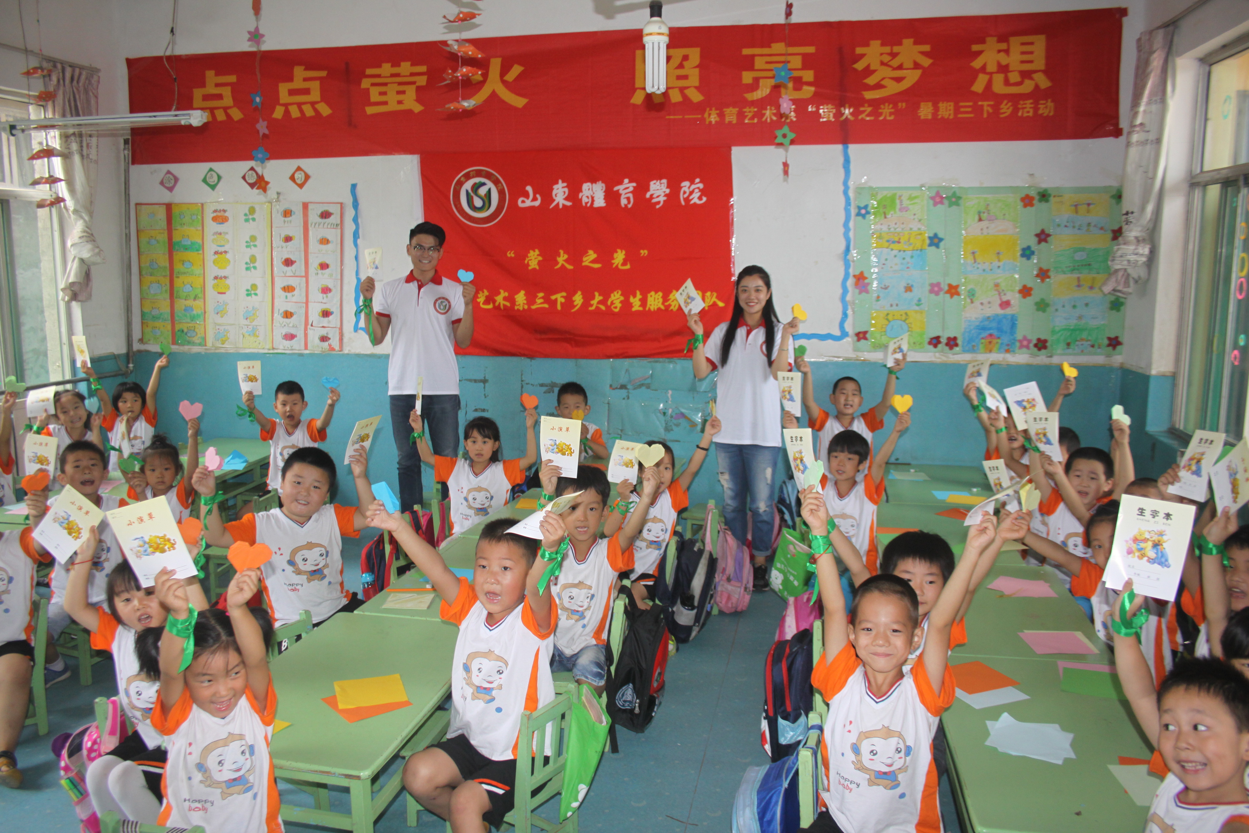 “萤火微光”暑期社会实践团队,以“凝聚萤火微光、筑梦乡村课堂”为主题开展系列志愿服务活动。活动积极响应“十三五”期间全民健身工作重点,由志愿团队自编、自创了适宜于幼儿的“开心韵动”健身操,配合读书、手工等室内课堂的开展,服务幼儿全面发展,设立“萤火课堂”实践服务基地,探索可持续的志愿服务模式。志愿服务以培养大学生社会责任为己任,开展思想政治课堂、田间课堂,充满青春正能量,展现出我校青年学生积极向上的精神风貌,弘扬了“三下乡”主旋律,达到了让大学生接触社会、服务社会并完成自我成长的效果,取得了积极育人的成效和较好的社会反响。(体育艺术学院)