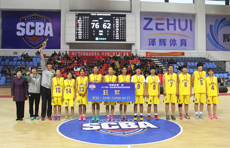 2016年10月27日,由国家体育总局科教司、中国篮球协会、全国体育院校竞赛协作会主办,山东体育学院、北京辉耀百年体育文化发展有限公司、山东泽辉体育文化管理有限公司承办的“泽辉体育”杯2016第一届全国体育院校篮球联赛女子组决赛在山东体育学院济南校区综合训练馆上演。最终,上海体育学院以76比62战胜山东体育学院勇夺“泽辉体育”杯2016第一届全国体育院校篮球联赛女子组冠军。