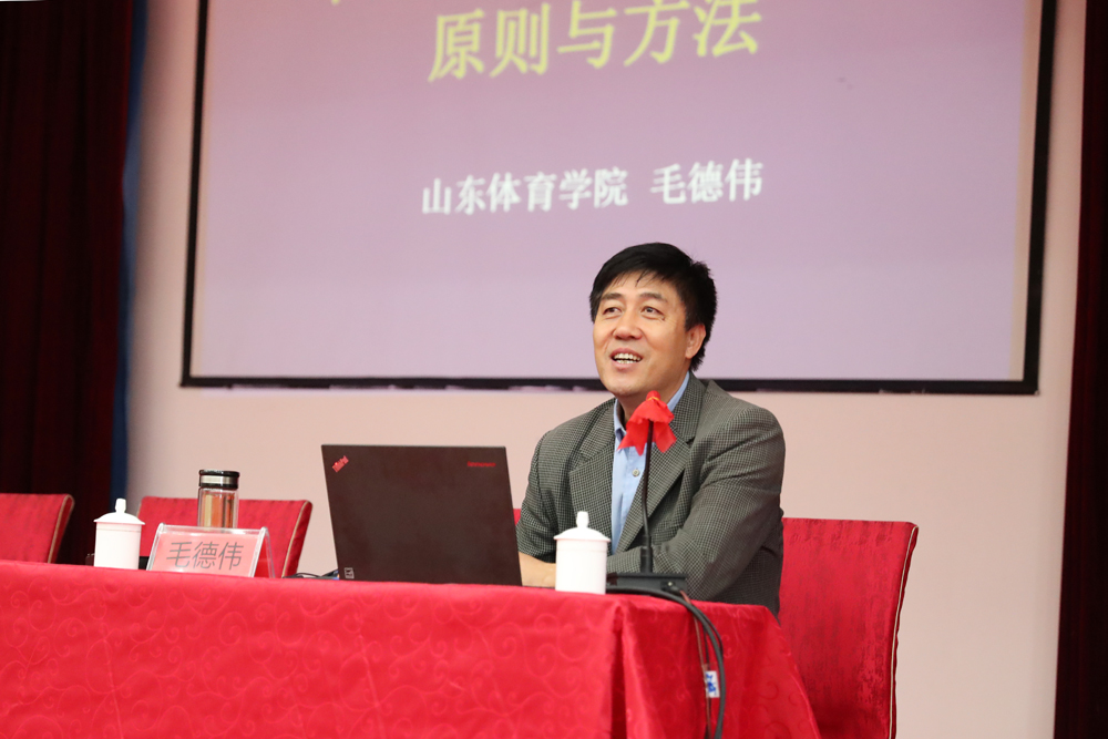 山东体育学院副院长毛德伟出席结业典礼并致辞。他对本次培训班的圆满成功,给予了充分的肯定,并提出了五个“好”:一是领导好,感谢体育局群体处以及相关部门,给我们本次培训给予大力的支持与帮助;二是组织的好,科学健身指导中心组建了国家社会体育指导员培训团队,精心策划、认真安排,并在潜移默化中将科学健身指导的思想植入培训中;三是“讲的好”,本次培训班,邀请授课的专家,高屋建瓴,既有理论又有实践;四是服务的好,本次培训在环境、住宿、伙食等方面都给学员们提供了优质的服务,使学员们可以精心聚力,认认真真学习;五是学的好,学员们虽然来自四面八方,但是大家心往一处想,劲往一处使,学习到了丰富的科学健身指导知识。同时,毛德伟对培训班学员们提出希望,把学习的知识尽快梳理,并活学活用到山东省的科学健身指导过程中。
