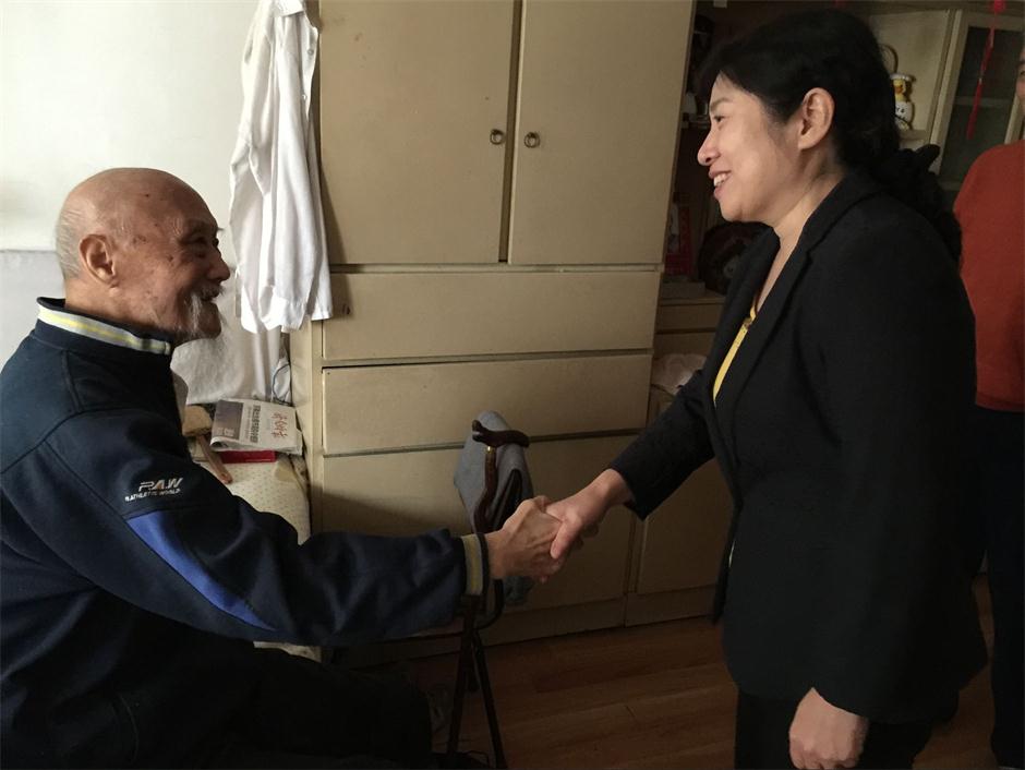 重阳节当天上午,副院长张艳霞来到拍摄活动现场,代表校领导向全体老同志致以节日的问候,然后,分别看望了入住养老院的王福荣老院长,离休厅级干部胡立宪、李玉敬和即将百岁的老党员张启昌。重阳节前,离退休工作处对其他离休干部进行了走访慰问。