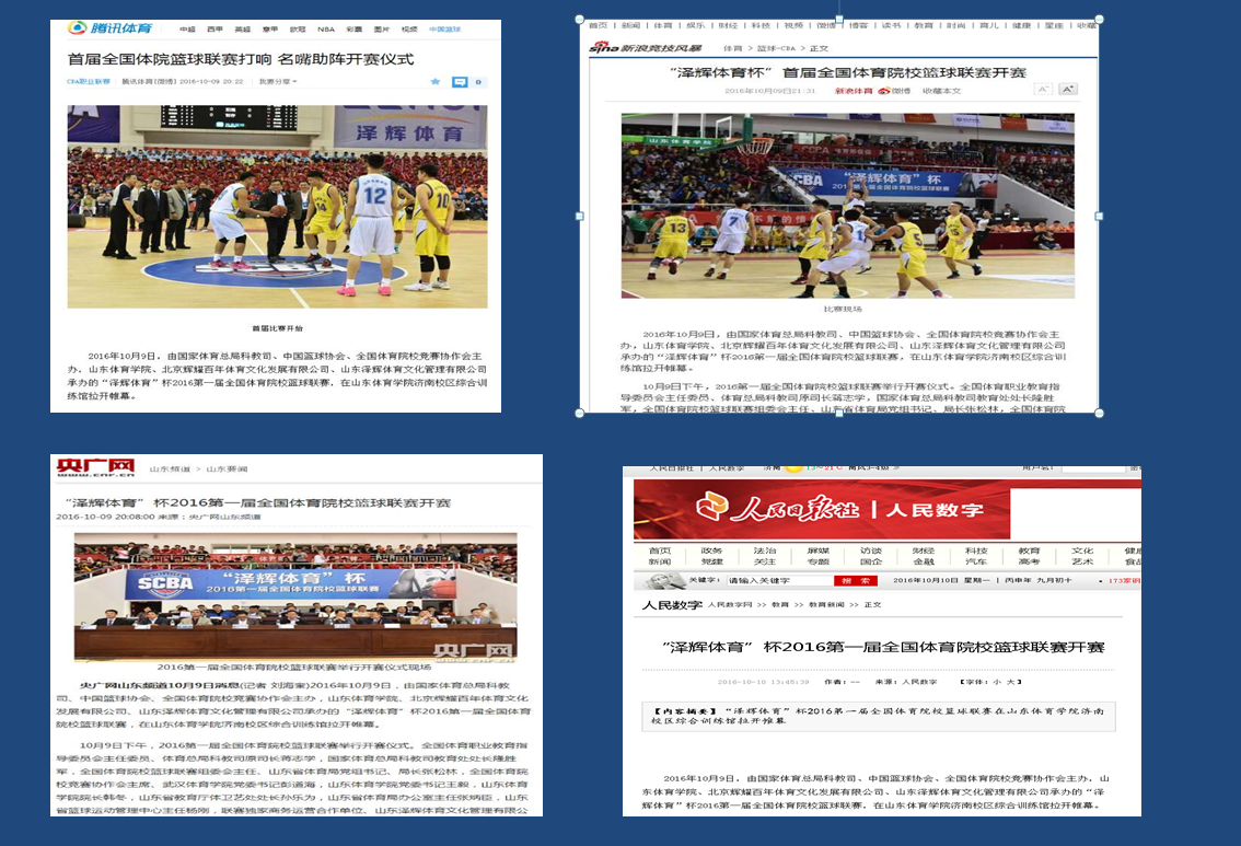 10月9日下午“泽辉体育”杯2016第一届全国体育院校篮球联赛在我校济南校区综合训练馆举行开赛仪式暨揭幕战后,引起强烈反响,更是吸引了广大篮球爱好者的极大关注。