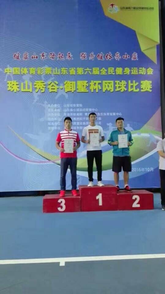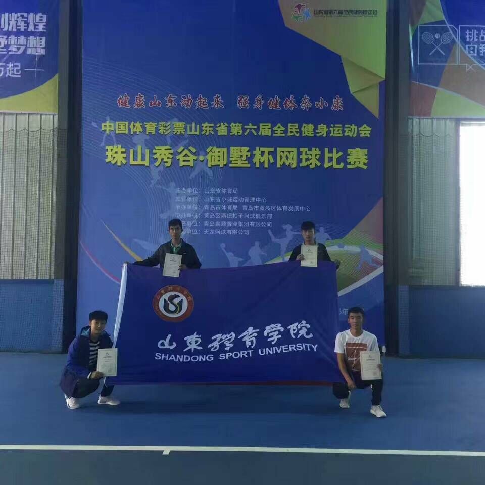 2016年10月14日-16日,山东省第六届全民健身运动会网球比赛在青岛举行,我校网球队在教练蒋争争的带领下获得男子单打冠军、第四名,女子双打季军,团体第四名的优异成绩。