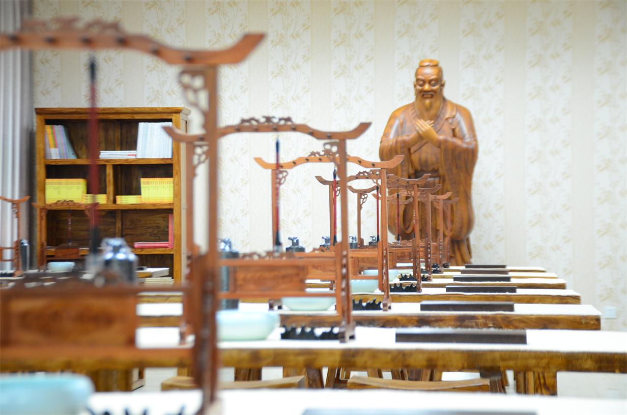 我校孔子学堂将以“写好字、读好书、做好人”为宗旨,为广大师生开设国学诵读、书画鉴赏、书画教学、篆刻、茶道、香道、插花、古典音乐欣赏、文明礼仪等课程,积极开展国学教育系列活动。