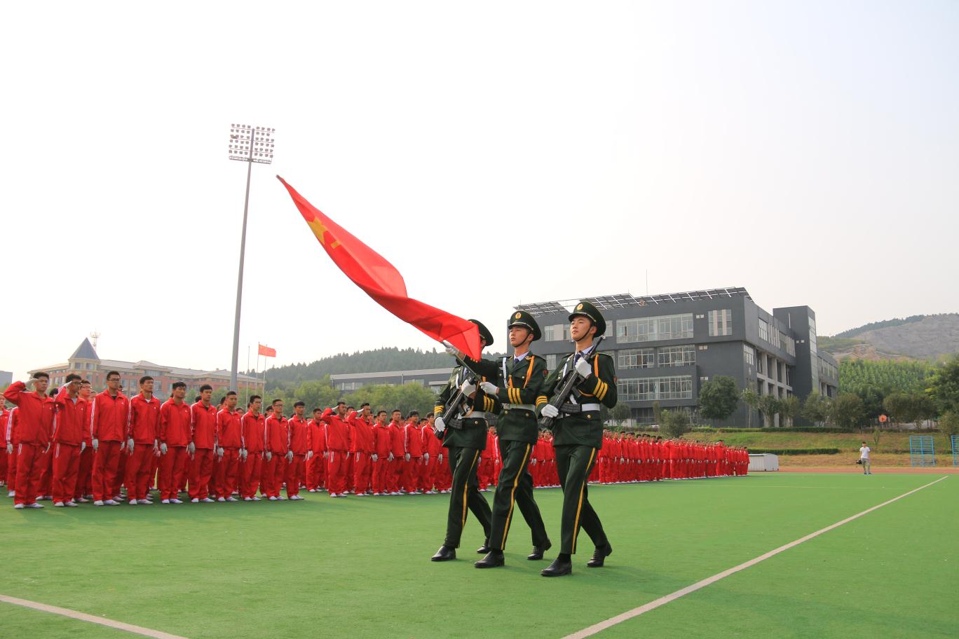9月18日,济南校本部在田径场隆重举行2016级新生军训汇报暨开学典礼。党委书记王毅,院长韩冬,党委副书记、纪委书记张云龙,副院长张艳霞、原维佳、毛莉虹,调研员任运河出席开学典礼。原维佳主持典礼。