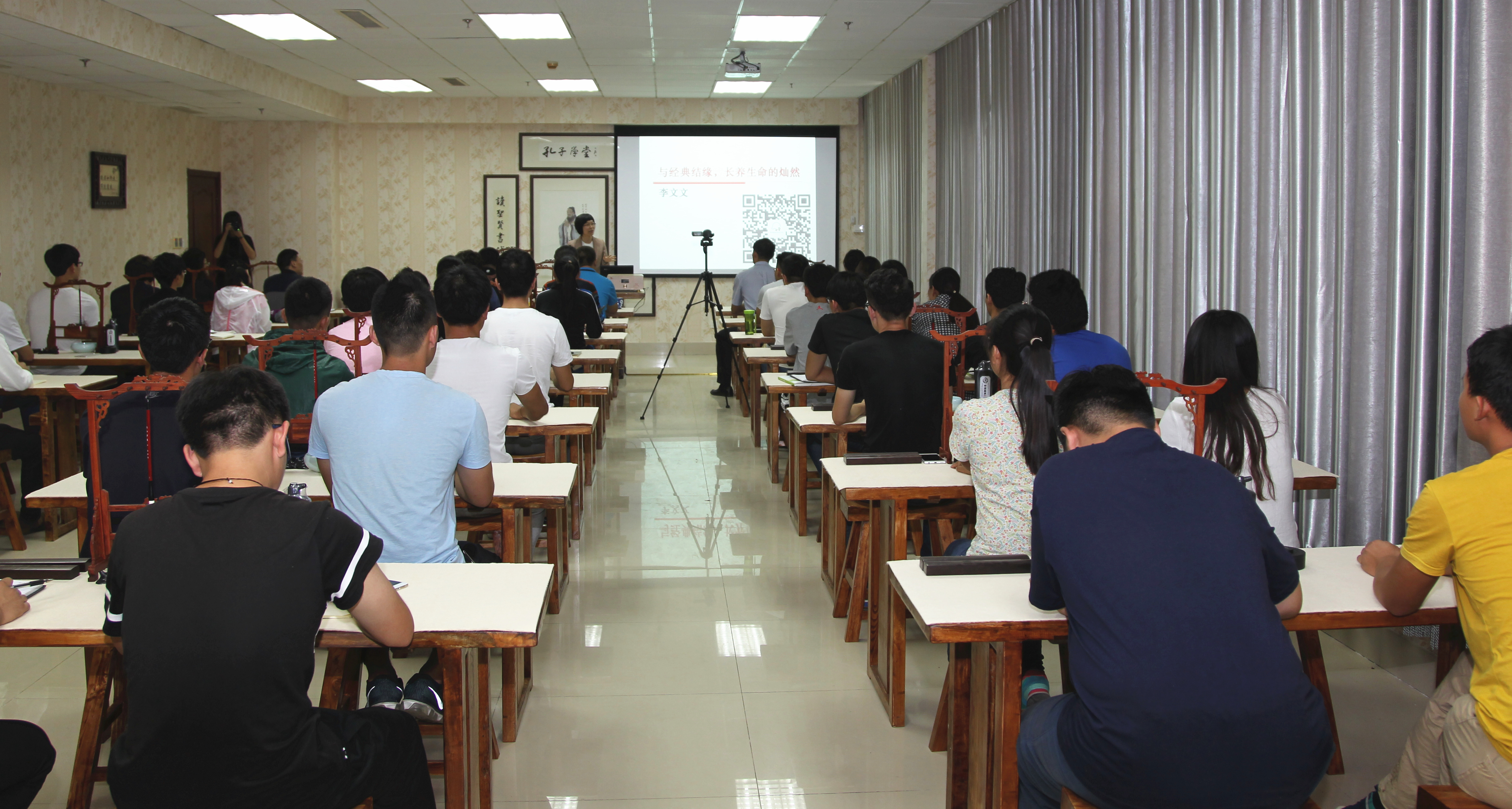 李文文引经据典,用通俗易懂的话语,结合现实生活的事例,诠释了国学文化的魅力。在讲座中重点阐述了三个方面的内容:一是为什么要学习传统文化?传统文化是先祖留给后人可“向上仰望、向下扎根”的民族智慧,蕴藏着中华民族的价值观、思维模式。学习传统文化能够让人们在世事瞬息万变、纷繁复杂的时代,守住自己的心,做到“心有所定,技有所守”。二是传统文化是什么?传统文化作为最高法则指导人们的生活。正如孔子说的君子有三畏:“畏天命、畏大人、畏圣人”,中华文明所有的智慧源泉就是“天地之道”。三是经典给我们带来什么?经典确立的是价值体系,即是、非、好、恶,教予人们如何看待工作、学习,如何对待得失祸福。学习经典转变的是思维体系,即“知本末”;学习经典影响的是生活方式,即“以其无私,故能成其私”。李文文以“曾”、“钱”两家家风为例,讲解了《四书五经》对现代文化的影响,强调未来的世界是中华文化的世界,国学经典是流淌在民族文化血液中的精髓与智慧,“破万卷书不如行万里路,阅人无数不如与高人同步”,生命是一场修行,我们应与经典结缘,提高自身修养。