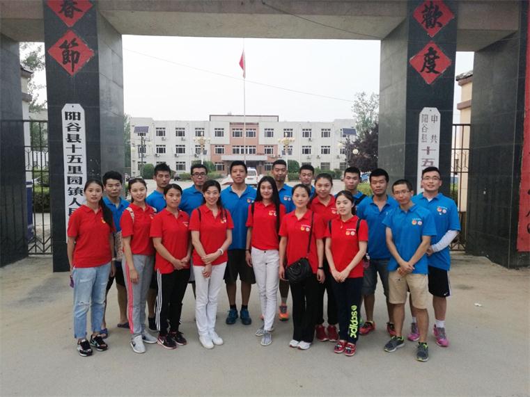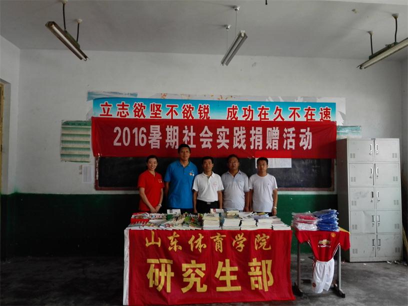 7月22日上午9:00,山东体育学院研究生部暑期社会实践捐赠活动在聊城市阳谷县十五里园镇中学举行。