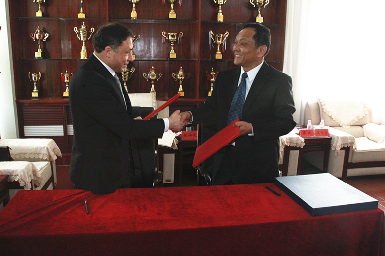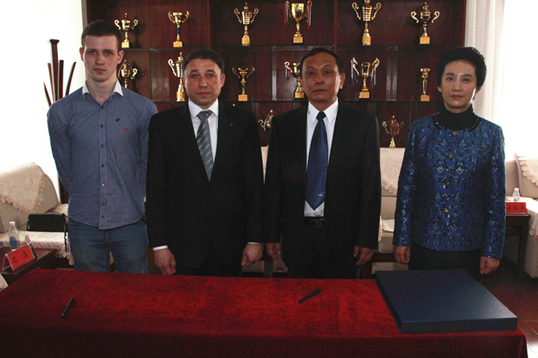 韩冬代表学校对乌克兰体育运动大学来访表示热烈欢迎,双方互相介绍了学校的基本情况,并就合作办学进行洽谈。会谈中,双方签署了《乌克兰国立体育运动大学山东体育学院校际友好合作协议书》。双方议定,将本着交流、协作、共享的方针,在教学、科研、训练等方面进行合作,共同发展。秉承“优势互补、资源共享、合作共赢、共同发展”的理念进行合作,建立友好学校关系。