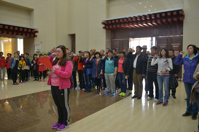 在孔繁森同志塑像前,重温入党誓词