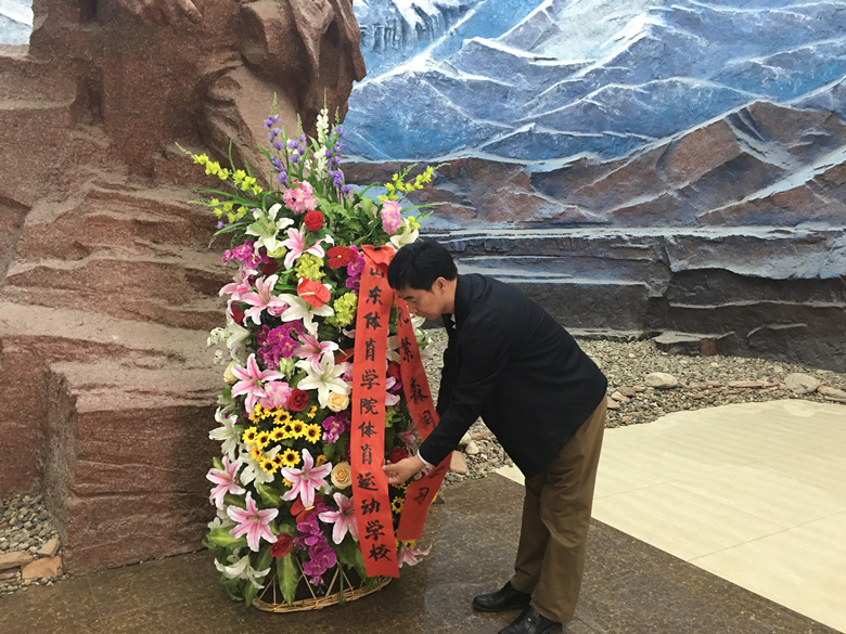 体育运动学校 刘文俊副校长代表党员向孔繁森同志敬献花篮