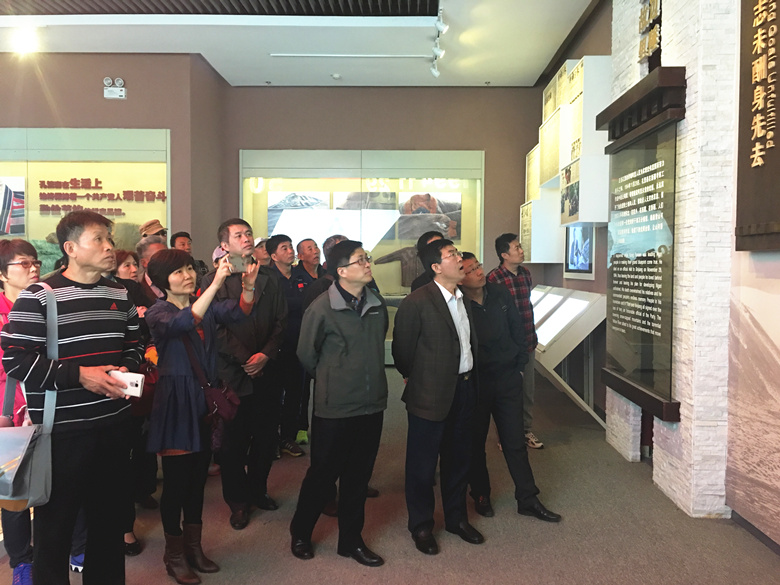 在孔繁森塑像前,参观学习的全体党员干部怀着崇敬的心情向孔繁森同志塑像深深鞠躬致意并敬献了花篮,并面向鲜红的党旗,庄严地举起右手,重温了入党宣誓词并逐人宣誓。在纪念馆展厅内,大家认真听取了孔繁森同志的事迹解说,孔繁森生前历时十载两次赴藏。1979年4月,孔繁森以国家利益为重,自觉服从组织安排,告别年逾古稀的老母、体弱多病的妻子和年幼的孩子,到海拔4700多米的西藏自治区岗巴县任县委副书记达3年之久。1988年,孔繁森再次离开家乡赴藏工作,他舍小家,顾大家,多次亲赴基层,为群众排忧解难,同当地藏族人民建立了深厚的感情;为西藏的建设、发展和稳定作出了突出的贡献,1994年11月,时任西藏阿里地委书记的孔繁森不幸以身殉职,谱写了一曲感人至深的奉献之歌、奋斗之歌。在十余年援藏工作中,他严以律己,清正廉洁,赢得藏族同胞的爱戴和尊敬。