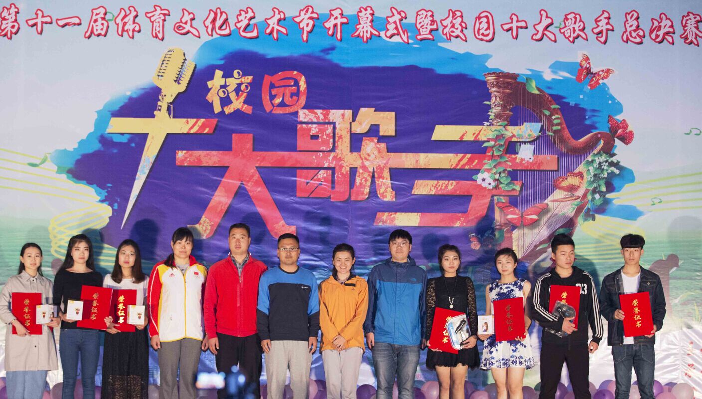 校园十大歌手总决赛拉开第十一届体育文化艺术节的序幕。参加总决赛的10位歌手经历了长达一个月的激烈海选和半决赛,过五关斩六将,脱颖而出。比赛中,10名歌手以其独特的音质、精湛的唱功、稳健的台风赢得现场观众的阵阵喝彩,整场比赛历时两个小时,可谓精彩纷呈,高潮迭起。最终孙萍萍、杜天宇、成豪梁分获得十大歌手的冠军、亚军、季军,孙茂健、牟师瑶、隗硕、徐青、王彬、朱志莹、艾静获得优胜奖。