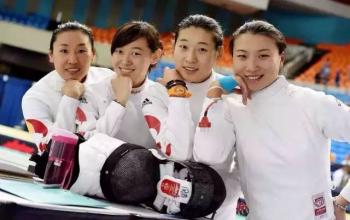 运运动一系学生孙一文(左二)代表中国女重队获2015年世界击剑锦标赛团体冠军