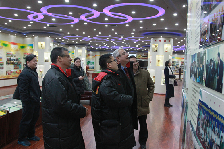 在副院长谷忠德的陪同下,Houdaifa校长一行参观了我校校史馆、运动场及训练中心各场馆。参观结束后,院长韩冬、副院长谷忠德在办公楼六楼会议室与来宾进行会谈。党委院长办公室、科研处等相关部门负责人参加了会谈。