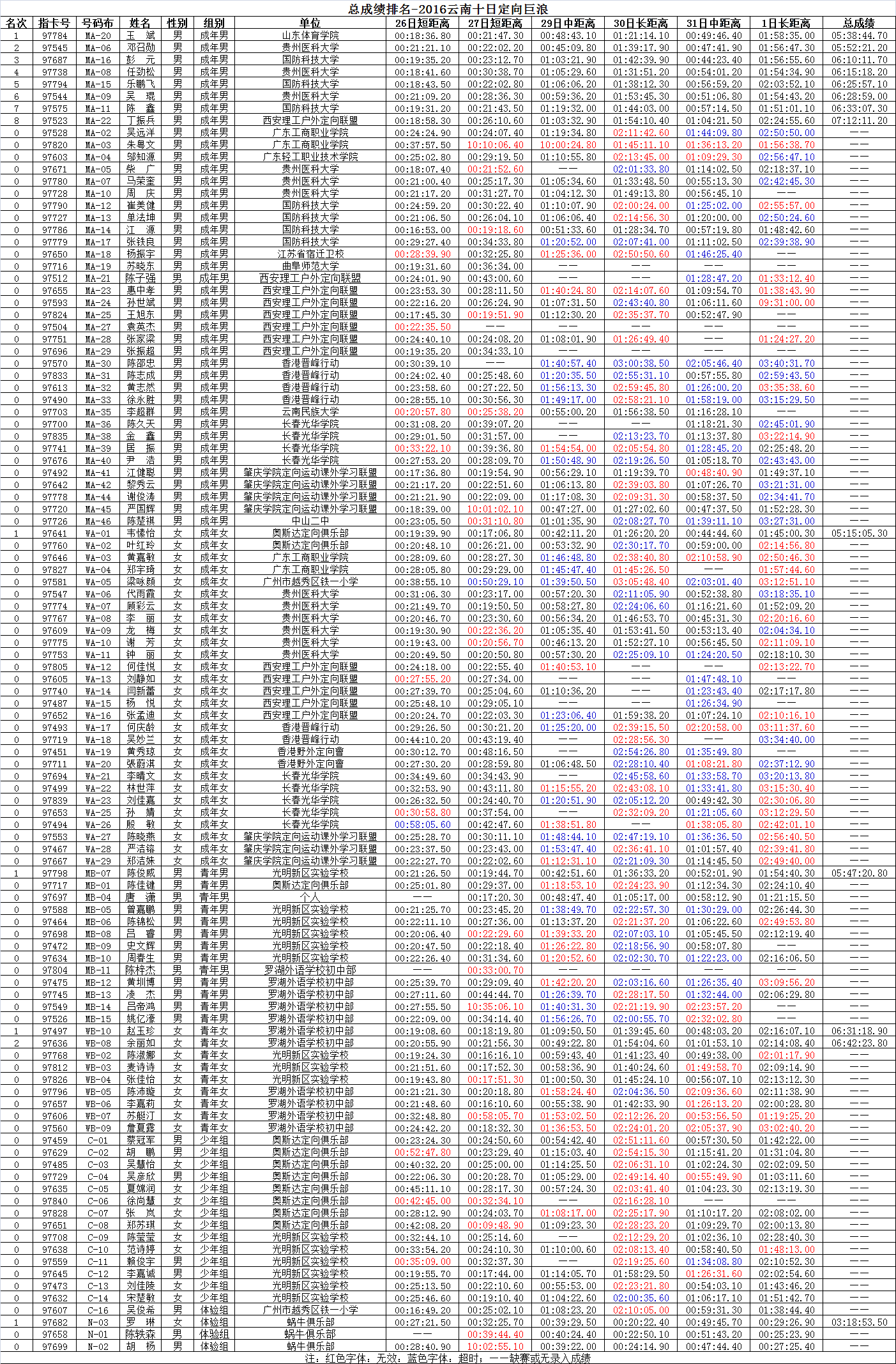 我校2014级运动训练专业研究生玉斌同学参加2016年云南十日定向巨浪赛,经过10天紧张激烈的角逐,最终获得成年男子组总冠军。