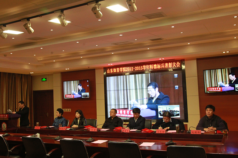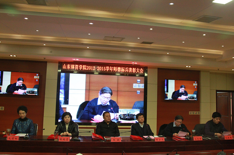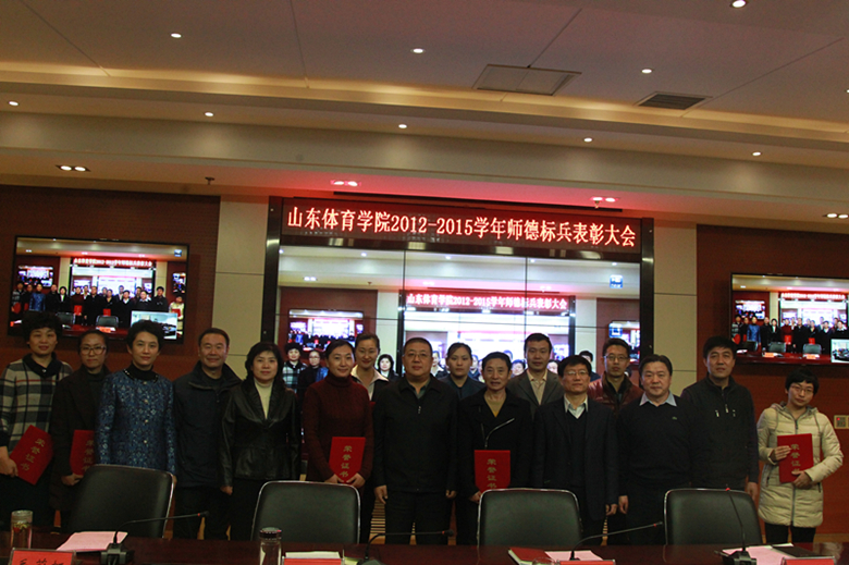 谷忠德宣读了《山东体育学院关于表彰2012-2015年度师德标兵的决定》。出席会议的院领导为获得“师德标兵”荣誉称号的教师颁发了荣誉证书。获得2012-2015年度“师德标兵”荣誉称号10名教师为(按姓氏笔画为序):