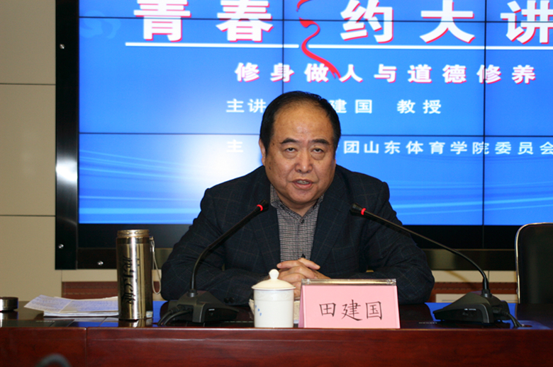 2015年12月17日,由校团委主办的以“修身做人与道德修养”为主题的第16期“青春之约大讲坛”成功举办。本期大讲坛邀请的主讲嘉宾是教育部国家教育发展研究中心专家咨询委员、中国高等教育管理研究会副理事长、教育部哲学社会科学重大课题评审专家、山东干部教育培训名师、中国海洋大学博士生导师田建国教授。我校党委宣传部、团委等有关部门工作人员,学校各民主党派负责人,济南校本部学生辅导员以及第五期青马工程学员聆听了讲座。讲座由党委副书记、纪委书记张云龙主持。