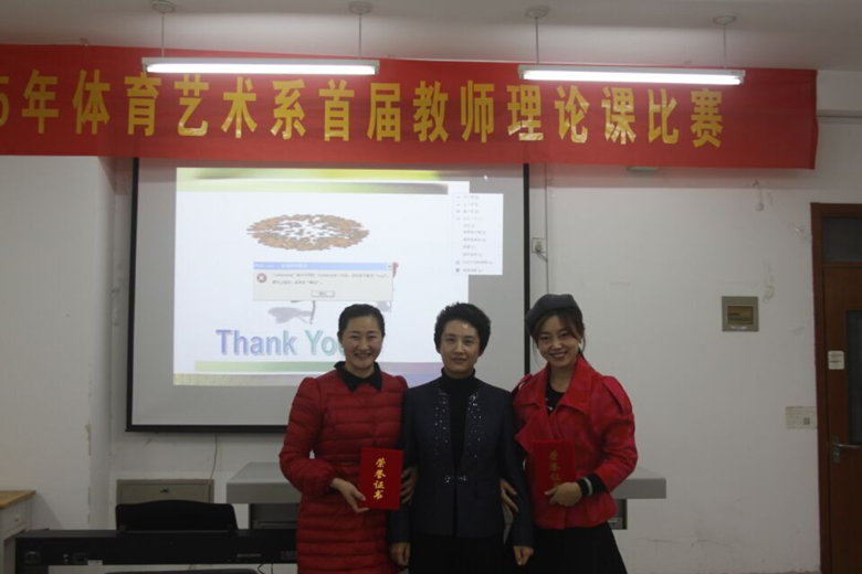 为贯彻落实教育部关于加强高校师资队伍建设的要求,进一步推动教师专业发展和提升教学能力, 体育艺术系进行首届全体专业教师理论课教学比赛,经过两周的风采展示于12月17日顺利落下帷幕。谷忠德副院长与毛莉虹副院长亲临现场指导并为获奖老师颁奖。