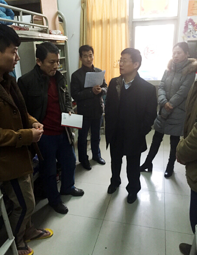 1月9日上午,党委副书记兼纪委书记张云龙检查指导济南校本部学生公寓工作,深入每栋学生宿舍楼查看安全和卫生状况,并与部分同学和老师进行亲切交流。