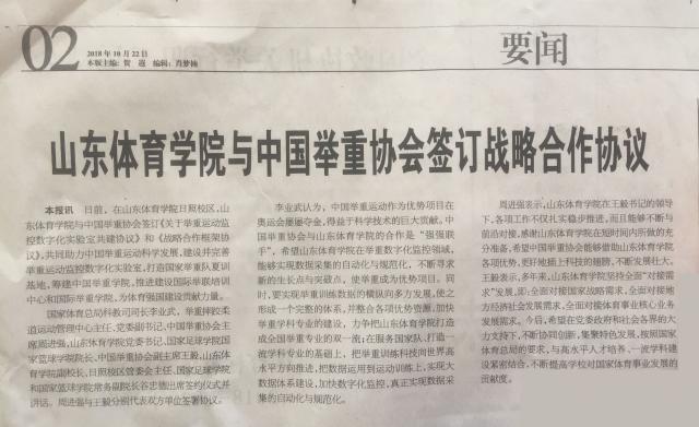 【中国体育报·要闻】山东体育学院与中国举重协会签订战略合作协议