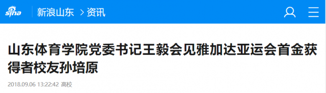 摘要:9月4日下午,山东体育学院党委书记王毅,副院长原维佳会见学校知名校友、雅加达亚运会首金获得者孙培原。