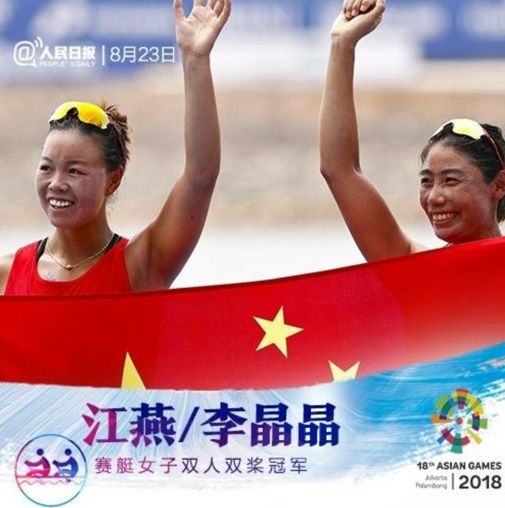 江燕与队友荣获赛艇女子双人双桨金牌;