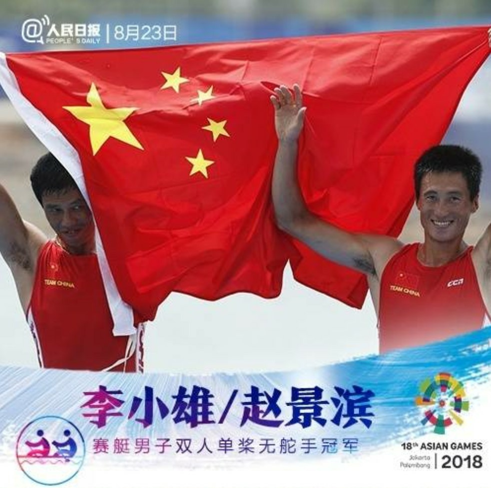赵景滨与队友荣获赛艇男子双人单桨无舵手金牌;