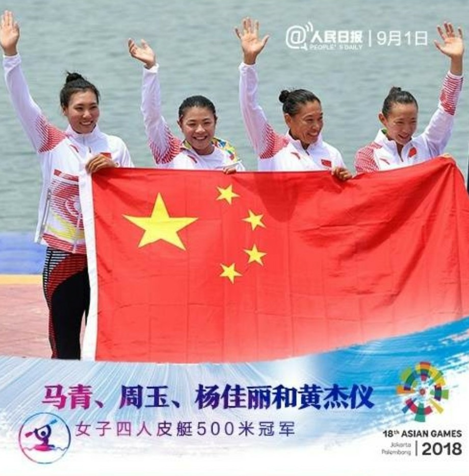马青与队友荣获皮划艇静水女子四人皮艇500米金牌;