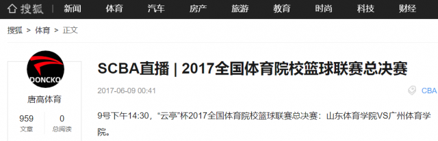 9号下午14:30,“云亭”杯2017全国体育院校篮球联赛总决赛:山东体育学院VS广州体育学院。